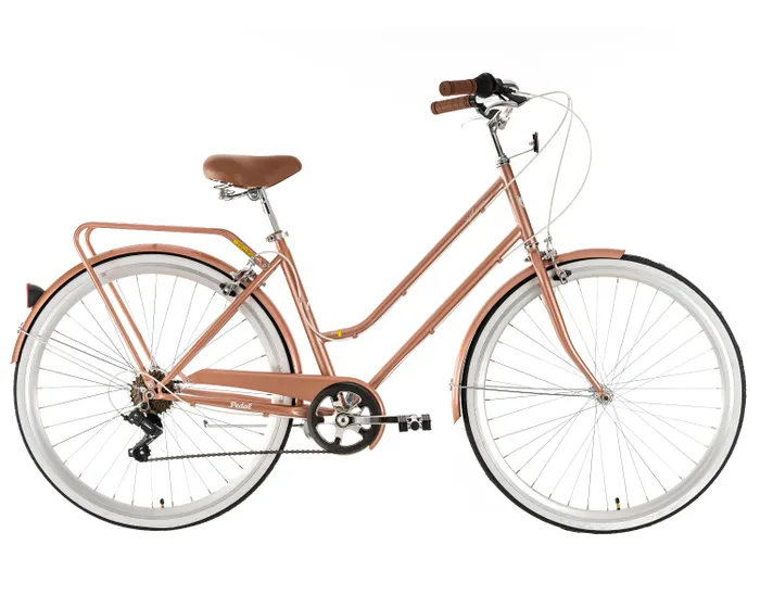 Pedal Uptown Classic Cruiser Bike Pedal Uptown is cruiser bike that combines vintage styling with practical features. Built with the casual rider in mind the Uptown is ideal for shorter rides around town or down to the park. Swept back and slightly rising handlebars give a relaxed upright riding position while the steel frame provides classical retro-style tubing optimised for comfort and ease of handling as the material absorbs bumps in the road. A fully customised chain cover and integrated double-sided chain guard protect from clothing from snags and the chain from dropping out. Colour-matched mudguards are stylish yet practical shielding you from any potential splashes. Pedal Uptown features high-quality dual-pivot brakes the same style of brakes used on road bikes that offer smooth reliable stopping power in any condition. Shimano 7-speed twist shifting also gives a good range of gears to help you cruise as well as tackle any hill.